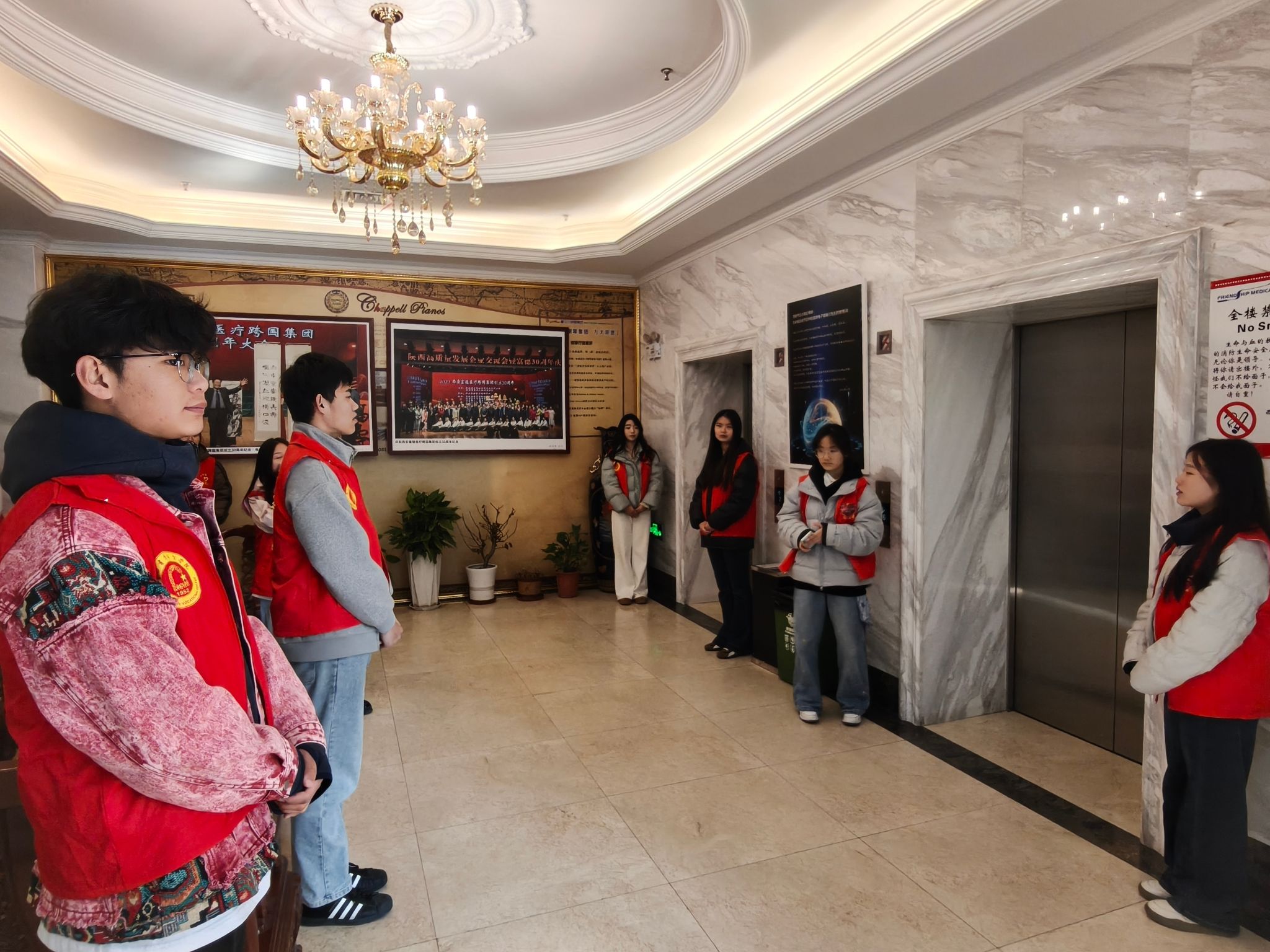 活动当天,志愿者们提前抵达会场,按照活动统一部署,迅速进入工作状态,有序开展各项服务。在电梯口、楼梯间等关键区域,志愿者定点值守,为盲童及到场嘉宾提供精准的无障碍通行引导,全力守护出行安全;在会场入口处,大家有条不紊地开展人员分流、咨询应答工作,保障入场环节高效有序;音乐会进行期间,志愿者采取定点值守与流动巡查相结合的方式,始终坚守岗位、恪尽职守,既维护了现场静谧的演出氛围,也为观众营造了良好的艺术欣赏环境,充分展现了我校学子的优良素养与责任担当。